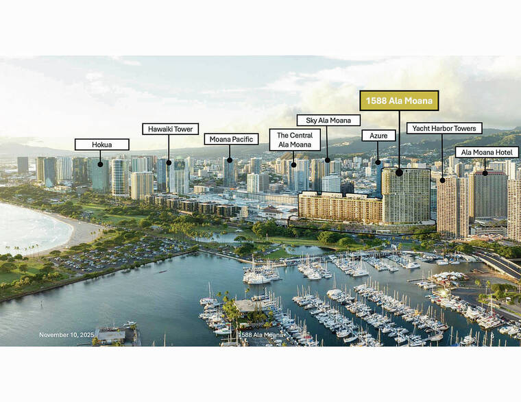 「1588アラモアナ」と名付けられたこのプロジェクトは、賑わうショッピングセンターの4.3エーカー(約1.7ヘクタール)の区画の東端、具体的にはアトキンソン・ドライブ近くのメイシーズ百貨店に面したマカイ側駐車場に建設が検討されている。